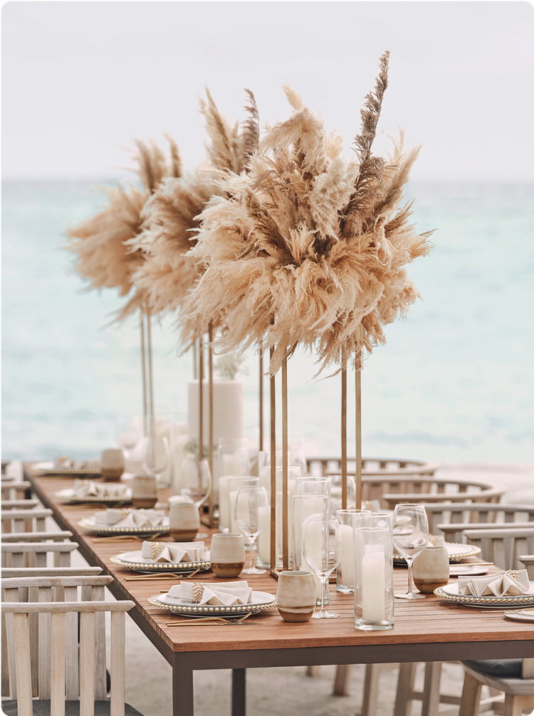 美しい熱帯の景色の中で永遠への旅が始まります。波の音が祝福をささやき、そよ風が頬をなでます。生涯続く瞬間が訪れます。プライベートな集まりを計画している場合も、趣向を凝らしたお祝いを計画している場合も、この島には愛を成就させる場所があります
