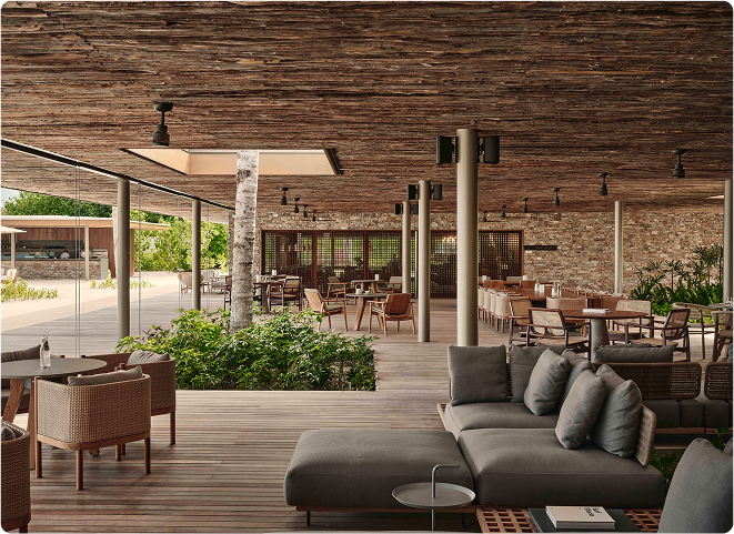 The heart of Patina Maldives, offering all day dining tinted with the flavours of the Indian Ocean
