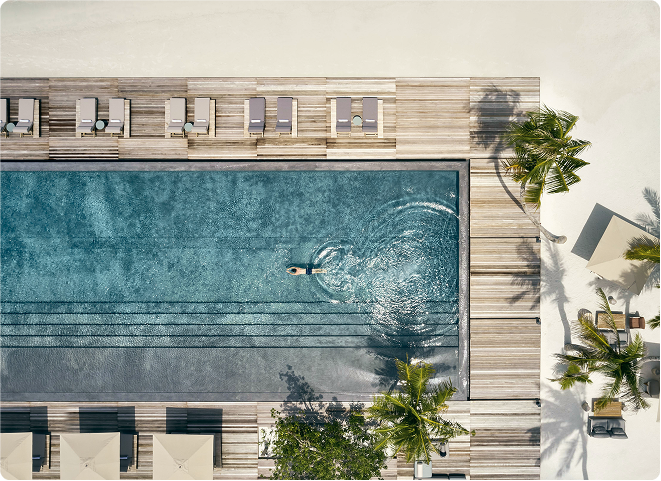 A laid-back poolside bar easing you into relief with casual nibbles and creative tipples