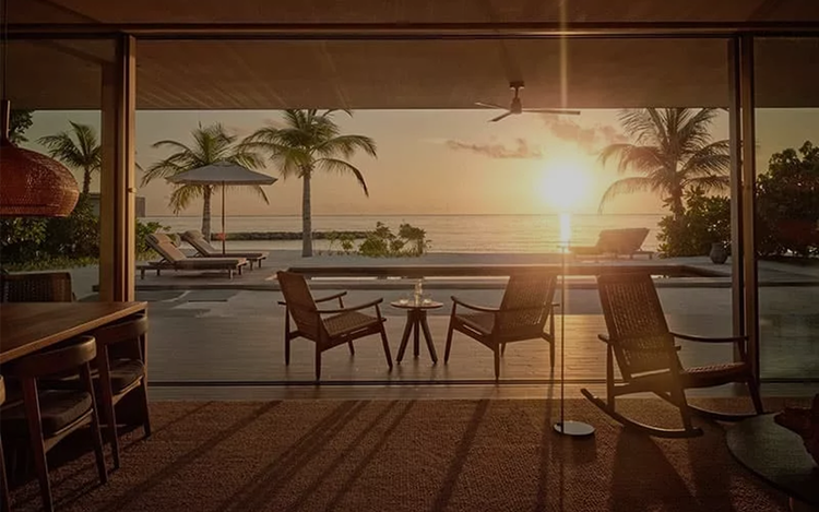 透过落地窗尽享马尔代夫日落的琥珀光辉,或在 9.6 米泳池与户外浴缸中尽情放松
