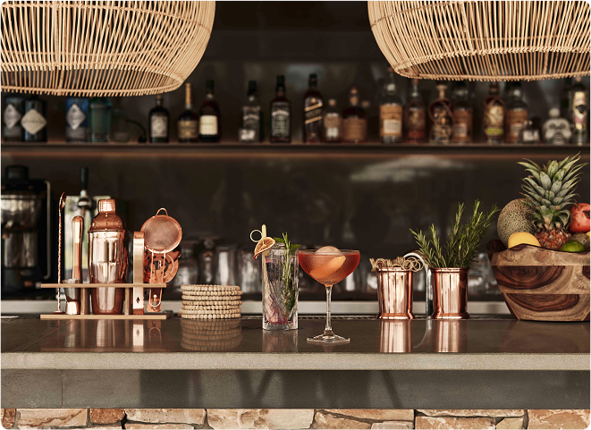 在池畔酒吧点一杯灵感特调,来几份精致小食,轻松投入假日的悠然节奏
