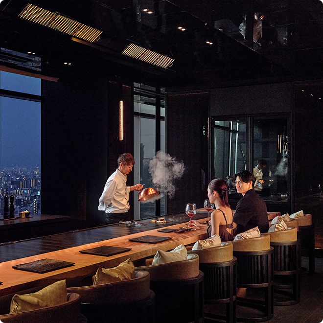 A teppanyaki experience where flame, steel, and precision meet the legacy of Osaka's samurai past