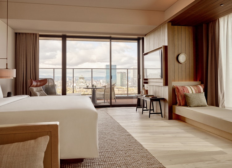 50 平方米的豪华客房,为您提供一处安放身心、重拾内在联结的理想之所。在大阪城的巍峨风华,或跃动的都市脉搏中悠然苏醒